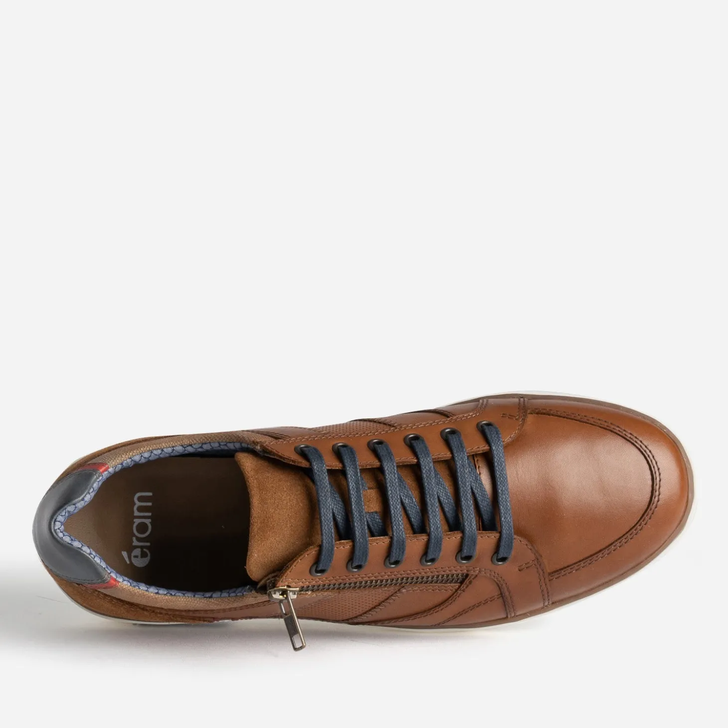 Tennis cognac cuir contrefort bleu marine