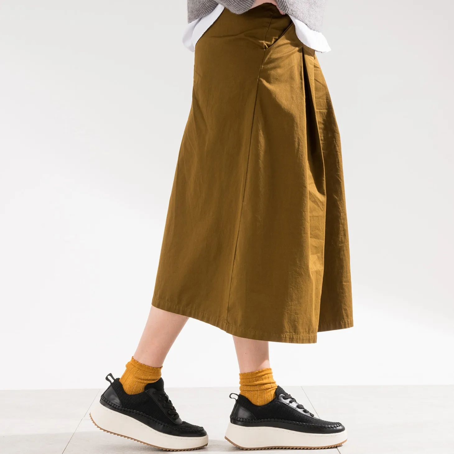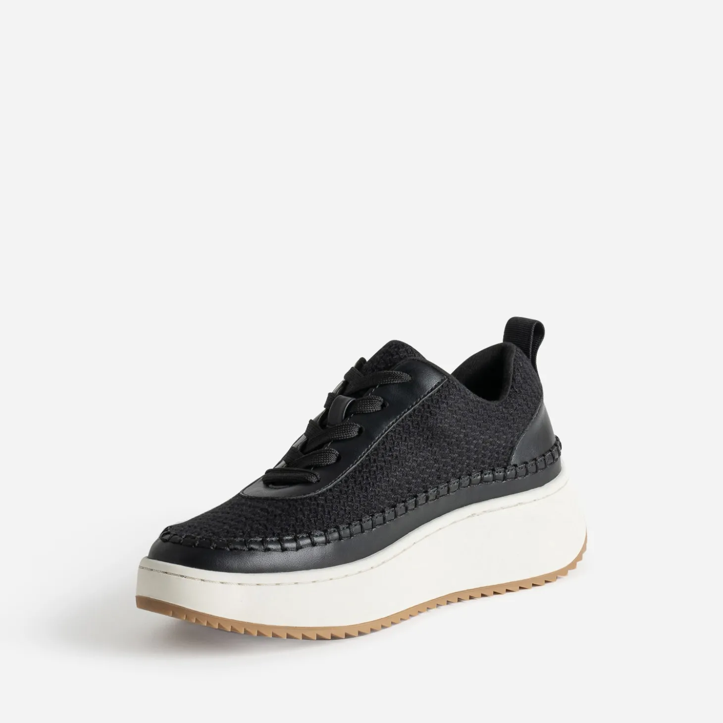 Esprit sport sur semelle compensée : la Dad shoes confirme son statut de tennis, pile dans la tendance. Bi-matière, elle associe un textile noir avec motif à relief à des bordures lisses ton sur ton, sur la patte de laçage et le bord de la semelle rythmé de surpiqûres fantaisie. Un modèle idéal pour gagner quelques centimètres sans effort ! Pensez à équilibrer votre look, en privilégiant soit du court (robe, short) soit un vêtement près du corps en haut et un pantalon ou jean large en bas.