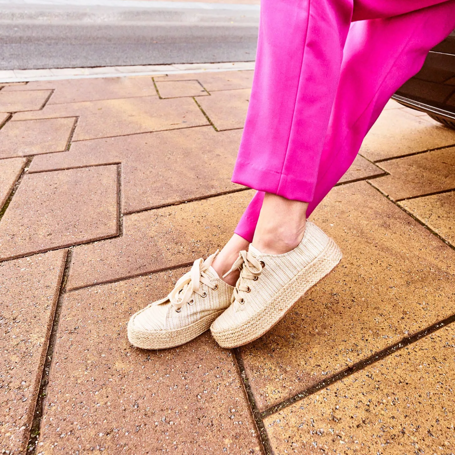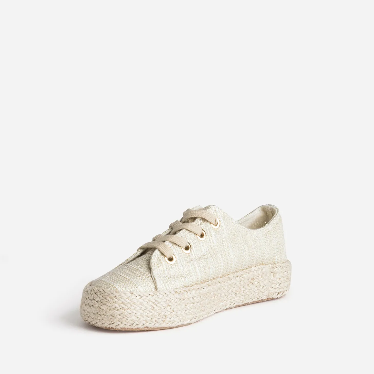 Mi-tennis mi-espadrille, cette sneakers s’invite dans votre shoesing d’été. En textile reliefé dorée, elle est montée sur une semelle à plateforme de 3 cm. Un modèle à porter au quotidien avec un jean boyfriend de couleur pastel et un sweat à message, ou en version plus chic, en total look blanc avec des accessoires dorés ou naturels.