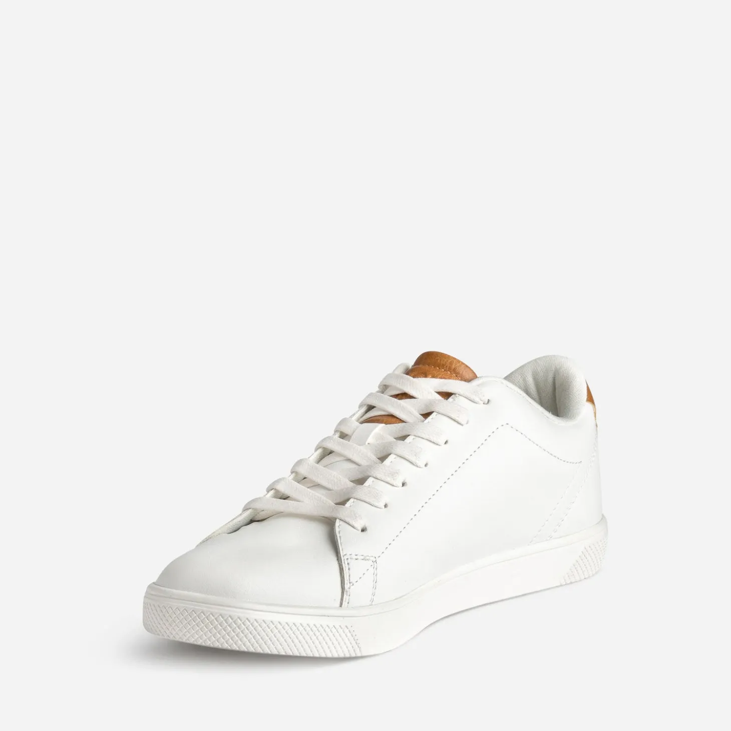Epurez votre look… par les pieds, avec cette tennis pour homme. Tige basse, matière synthétique lisse, coloris blanc, elle se laisse twister d’une touche camel, sur la languette et le contrefort. Un modèle tendance, avec tous vos looks du quotidien.