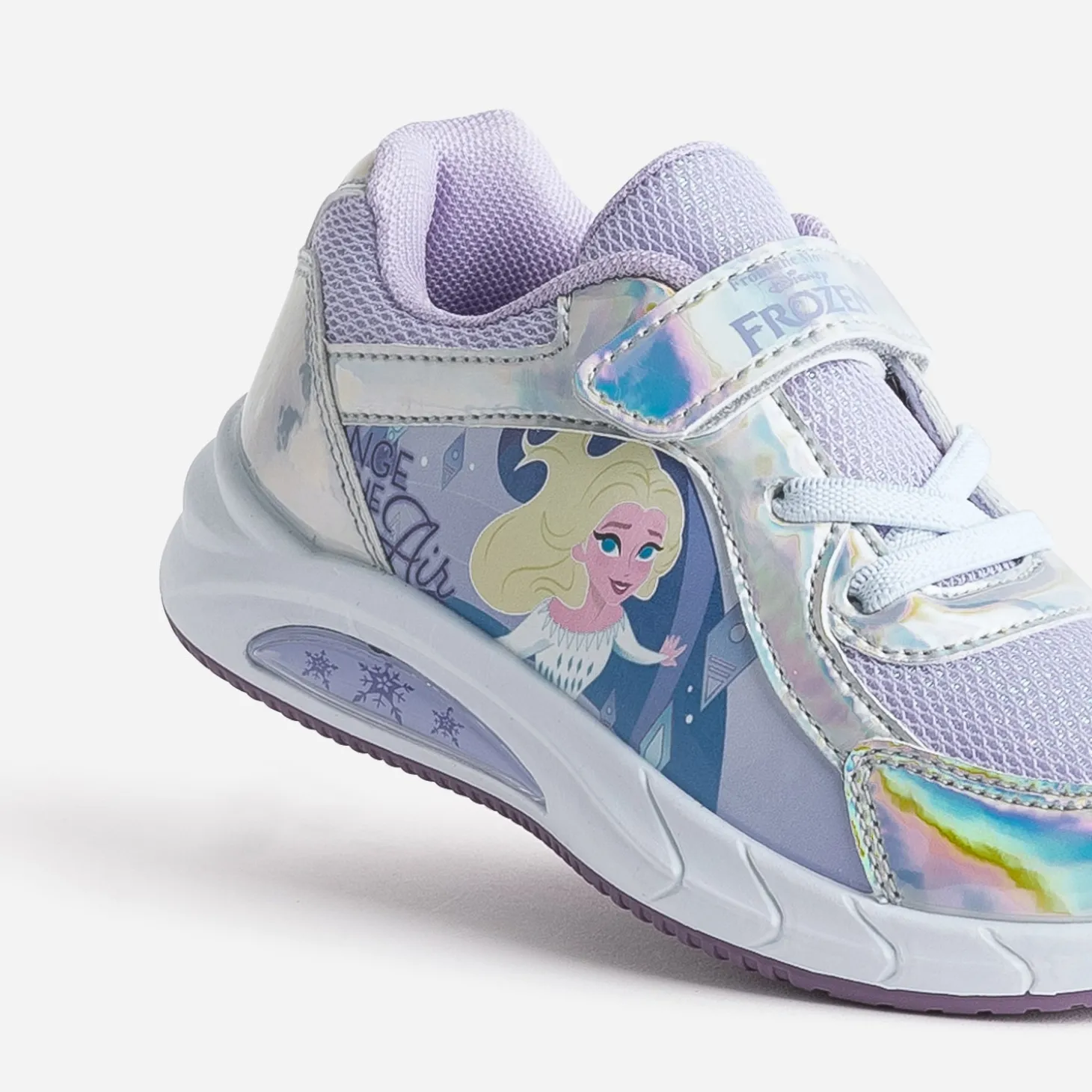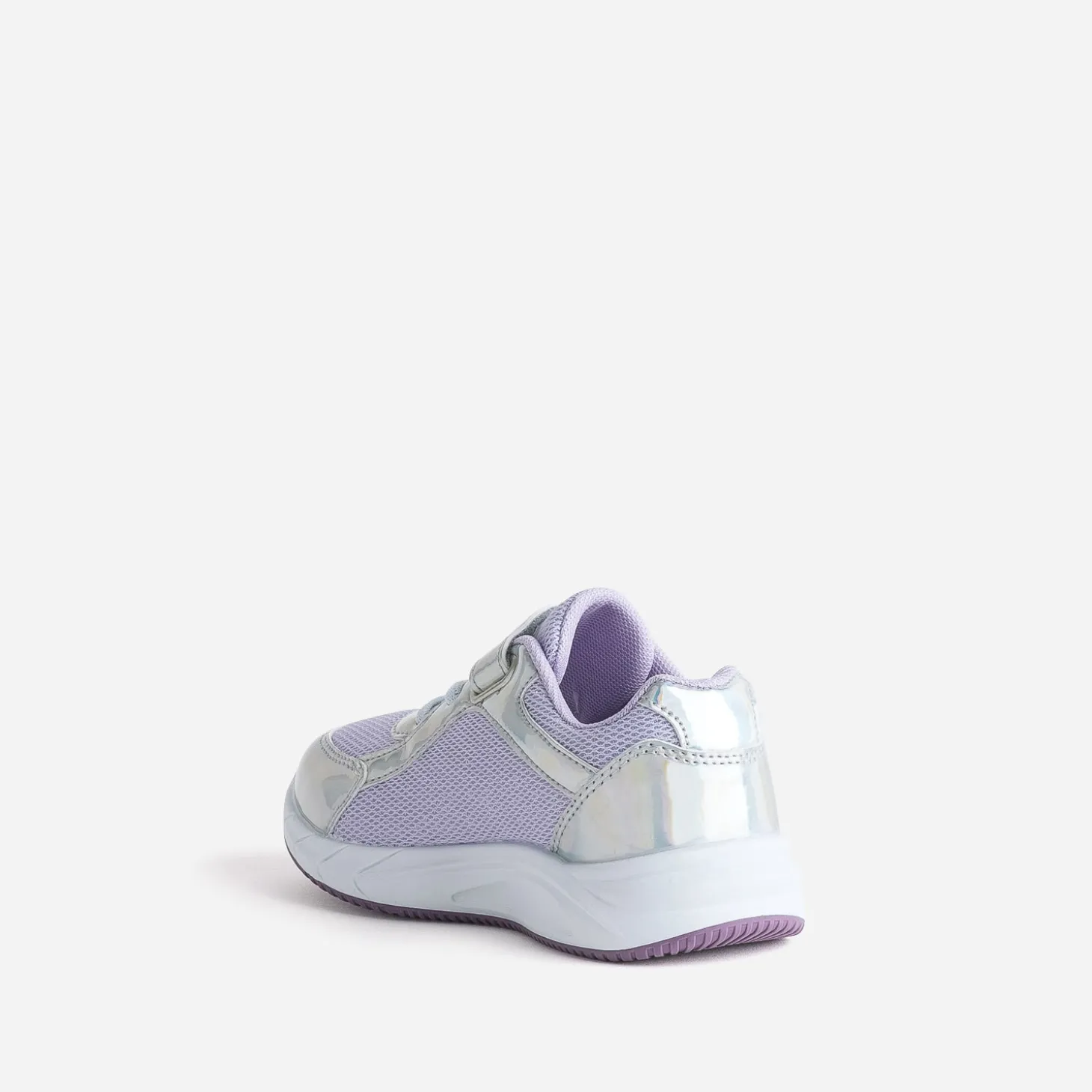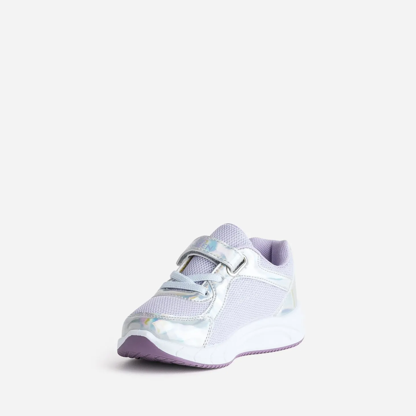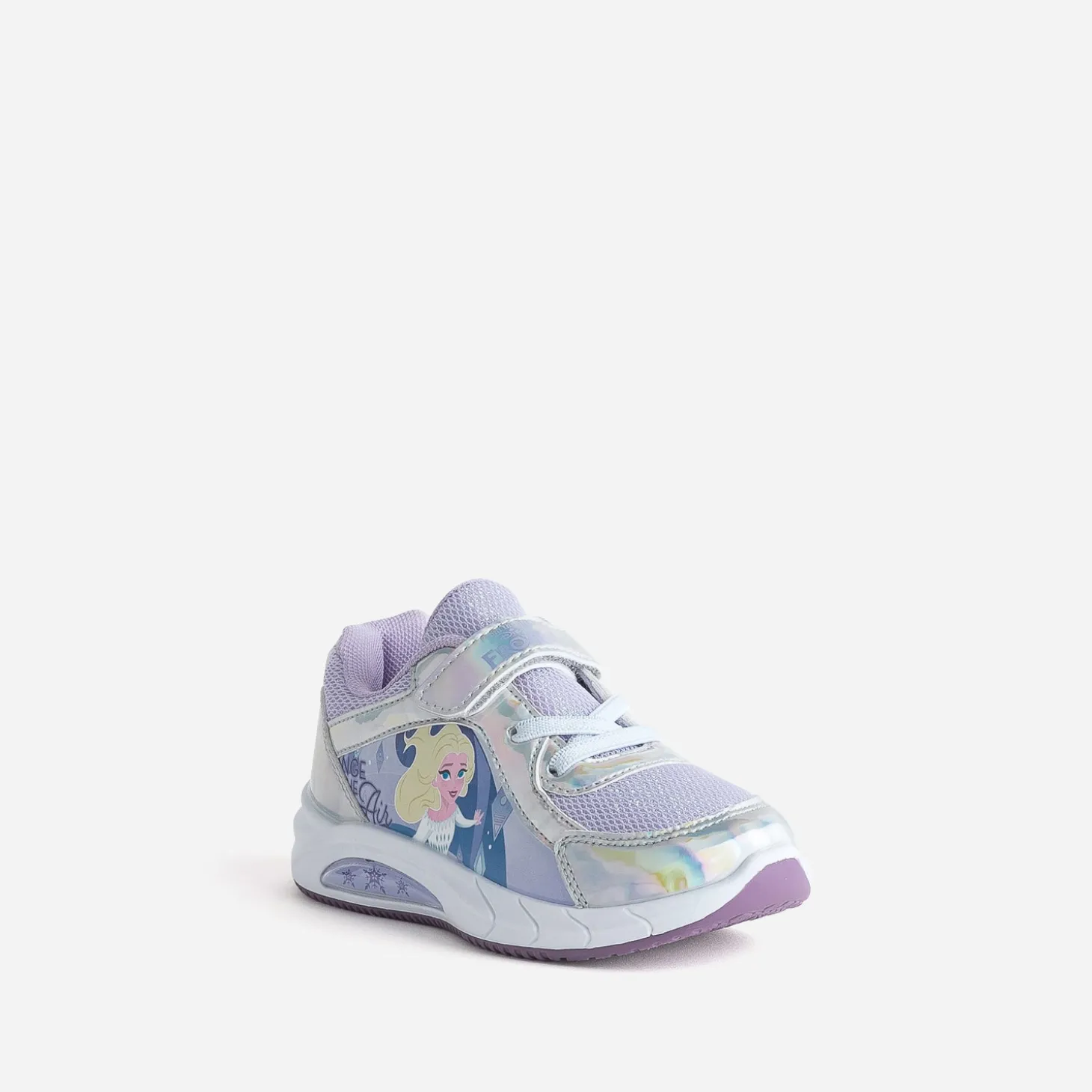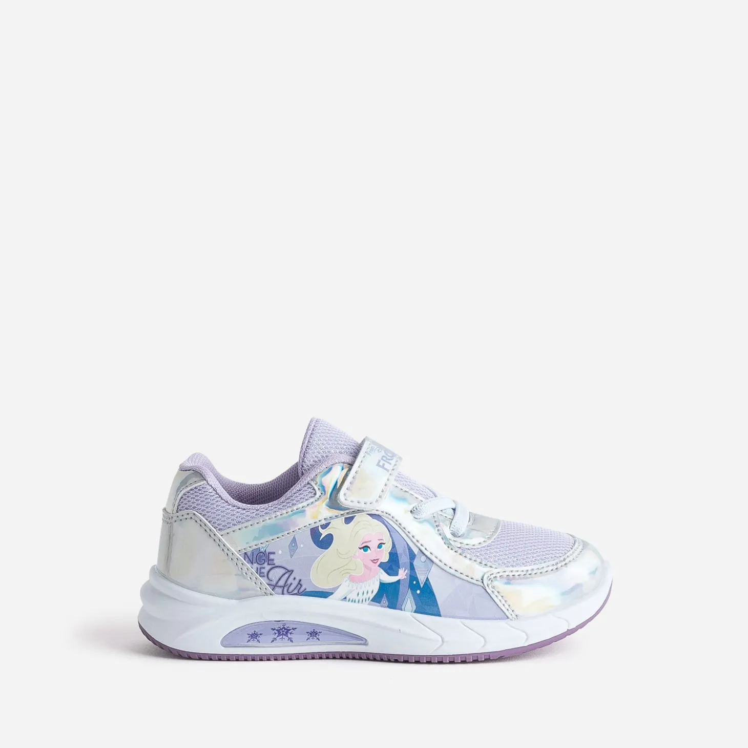 Du matin au soir et du soir au matin, elle n’a d’yeux que pour elle ! Chaussez, votre fille, d’une paire de tennis à l’effigie d’Elsa ! Matière synthétique iridescent et mesh parme s’associent pour un effet ‘glacé’ renforcé par une finition irisée, des motifs cristaux sur les côtés et des flocons clignotants dans la semelle. Le voyage au royaume d’Arendelle commence ici !