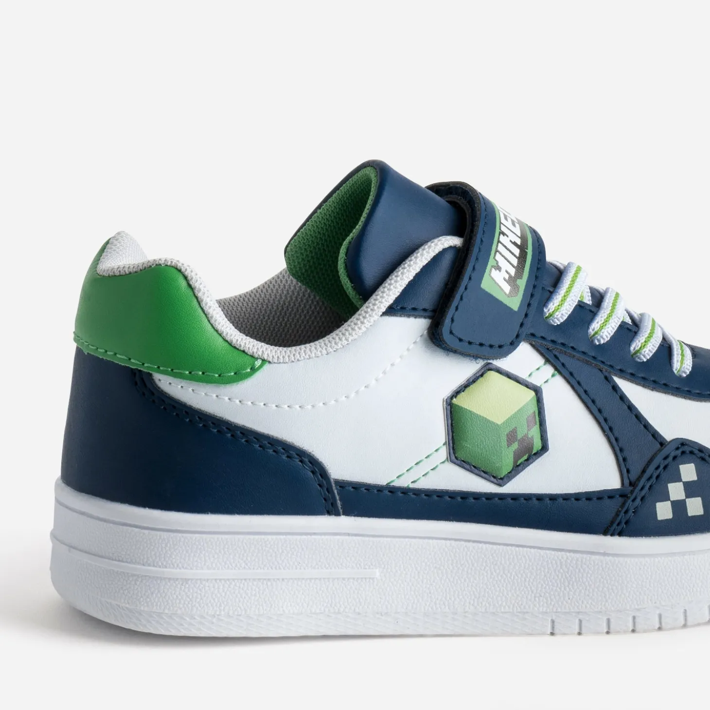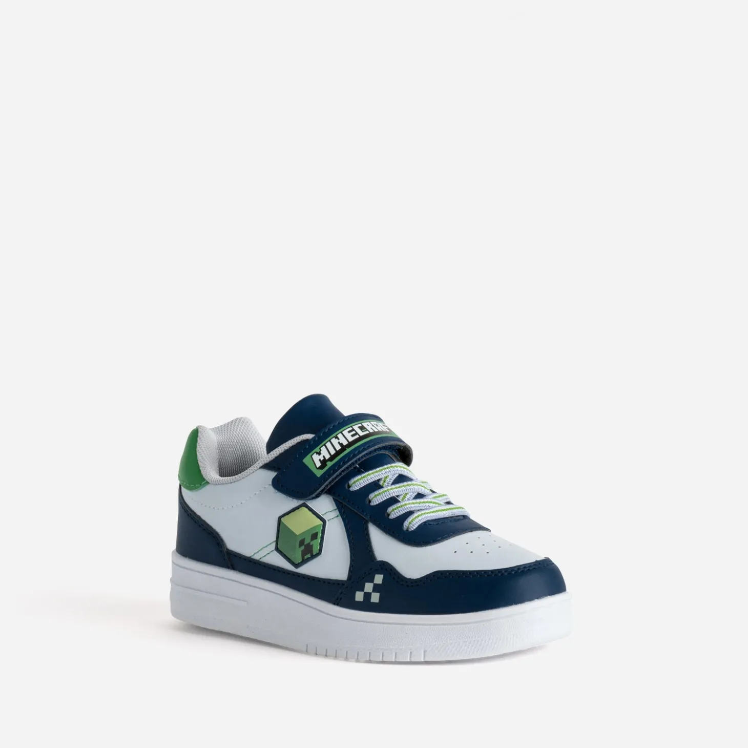 Cette tennis pour enfant reprend les codes du jeu vidéo. Par ses couleurs, bleu marine, blanc et vert. Par ses visuels : cube en 3D et pixels. Par son logo, posé sur le scratch, en renfort du lacet élastiqué. Un modèle parfait pour revendiquer sa passion, jusqu’en dehors de l’écran.