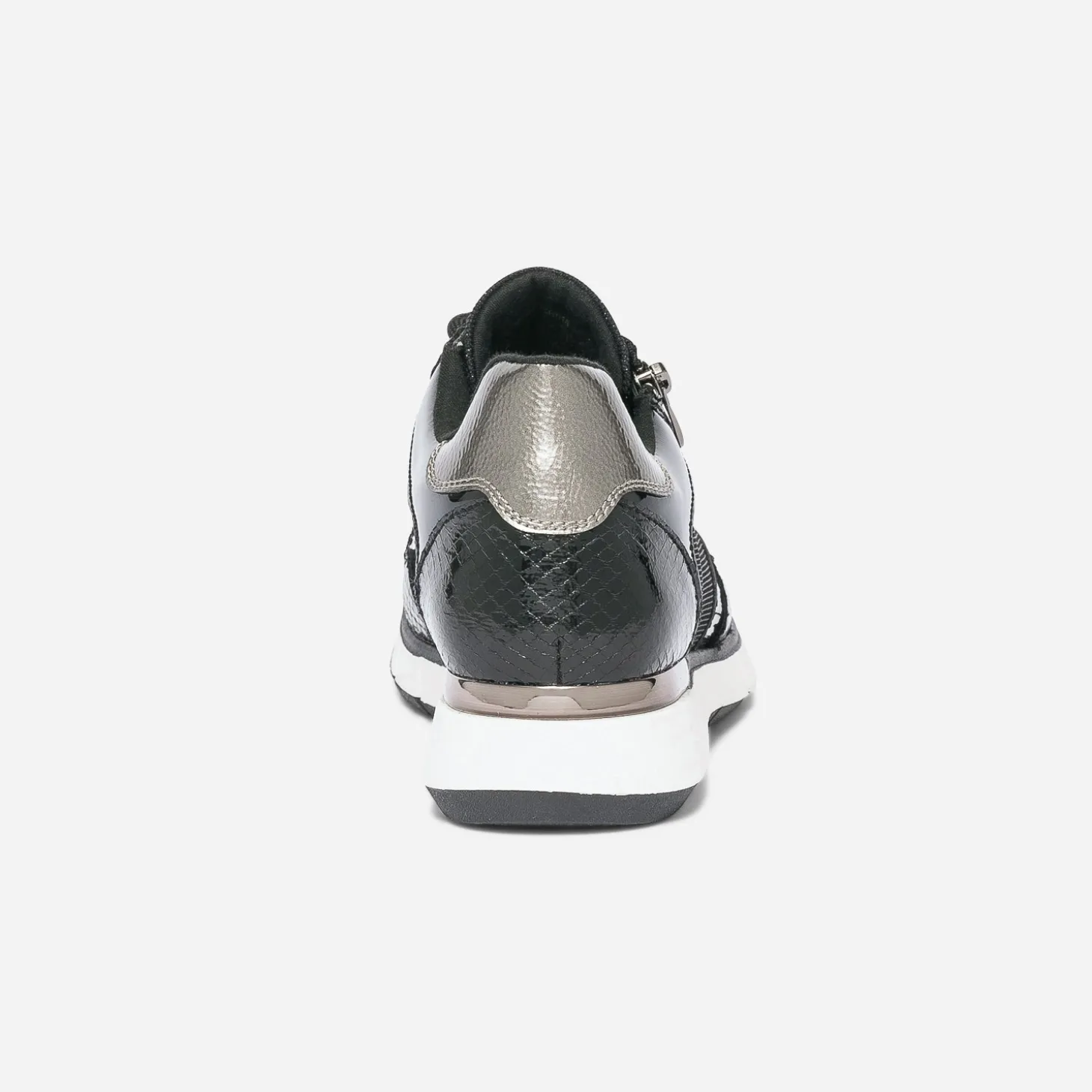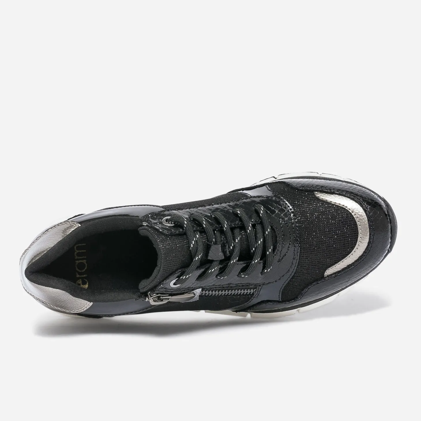 Des paillettes, du verni, du métallisé. 3 bonnes raisons de craquer pour cette tennis pour femme. Noire, elle est twistée de touches bronze sur le bout du pied et le contrefort. Un modèle casual chic, aussi à l’aise avec une tenue sport qu’avec un costume.