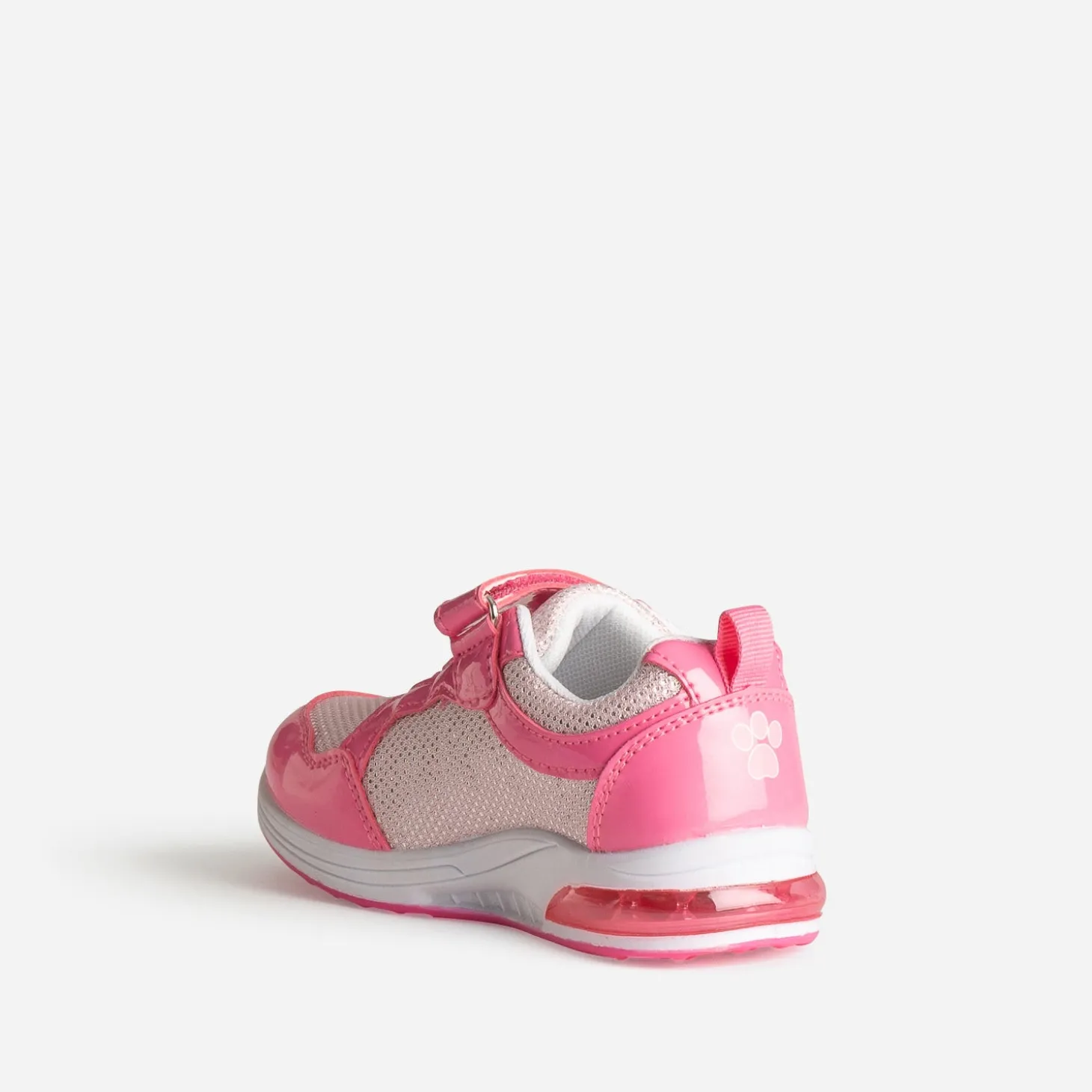Elle sera d’abord attirée par le visage de Stella, tout sourire. Elle appréciera ensuite la matière lisse, rose et vernie, associée au mesh rose clair sur fond argenté. Elle sera finalement conquise par la semelle qui s’allume à chacun de ses pas. Magique ! Cette tennis pour fille, c’est l’assurance de faire plaisir à votre fille, sur tous les points. Bonus : lacet élastiqué et scratch lui permettent de l’enfiler et de l’ôter toute seule !
