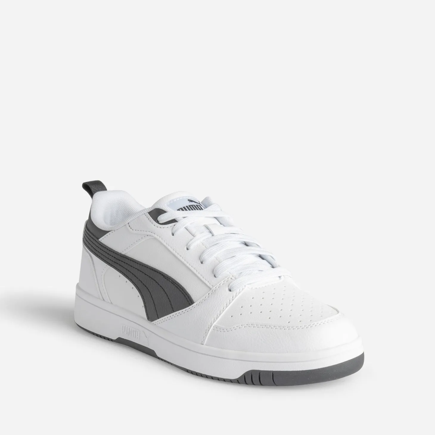 Combinant à la fois les styles rétro et futuriste de l’univers du basketball, le modèle Rebound Lay Up Low s’invite dans le shoesing des juniors. En matière synthétique blanche, elle se laisse twister de touches de noir, sur les côtés et les logos. Elle se ferme par un lacet plat blanc. Une sneakers-star de la cour de récré !