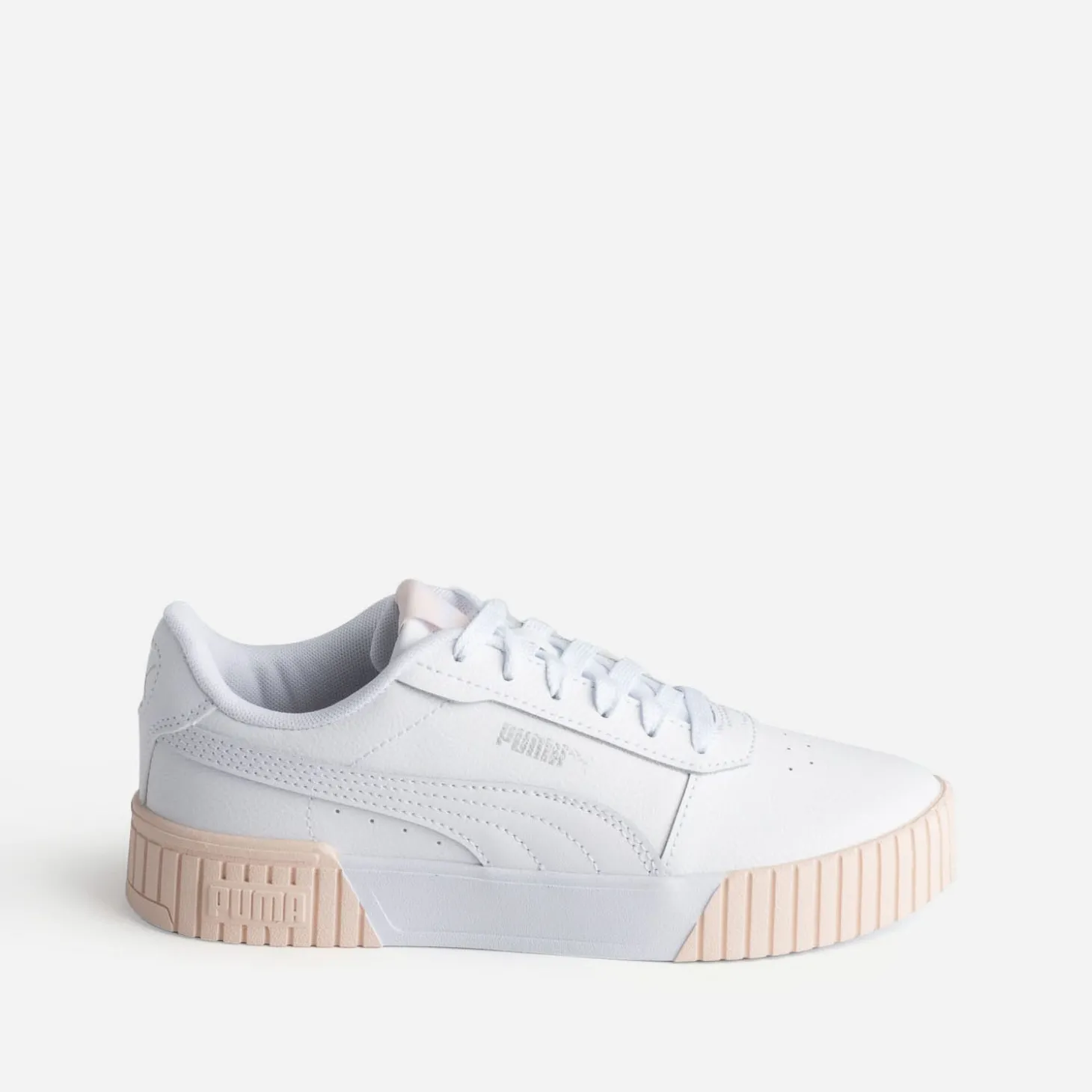 Montée sur une semelle légèrement plateforme, cette tennis PUMA pour femme bouscule les codes de l’univers du sport. En matière synthétique, elle se décline en coloris blanc depuis la tige jusqu’au lacet et la doublure, féminisée de touches argent brossé sur les logos et de touches pêche sur le bord de la semelle, à l’avant comme à l’arrière. La semelle intérieure ‘Softfoam’ assure un confort optimal. Oubliez l’entraînement : vous pouvez la porter, au quotidien, pour finaliser votre look d’une touche décontractée.