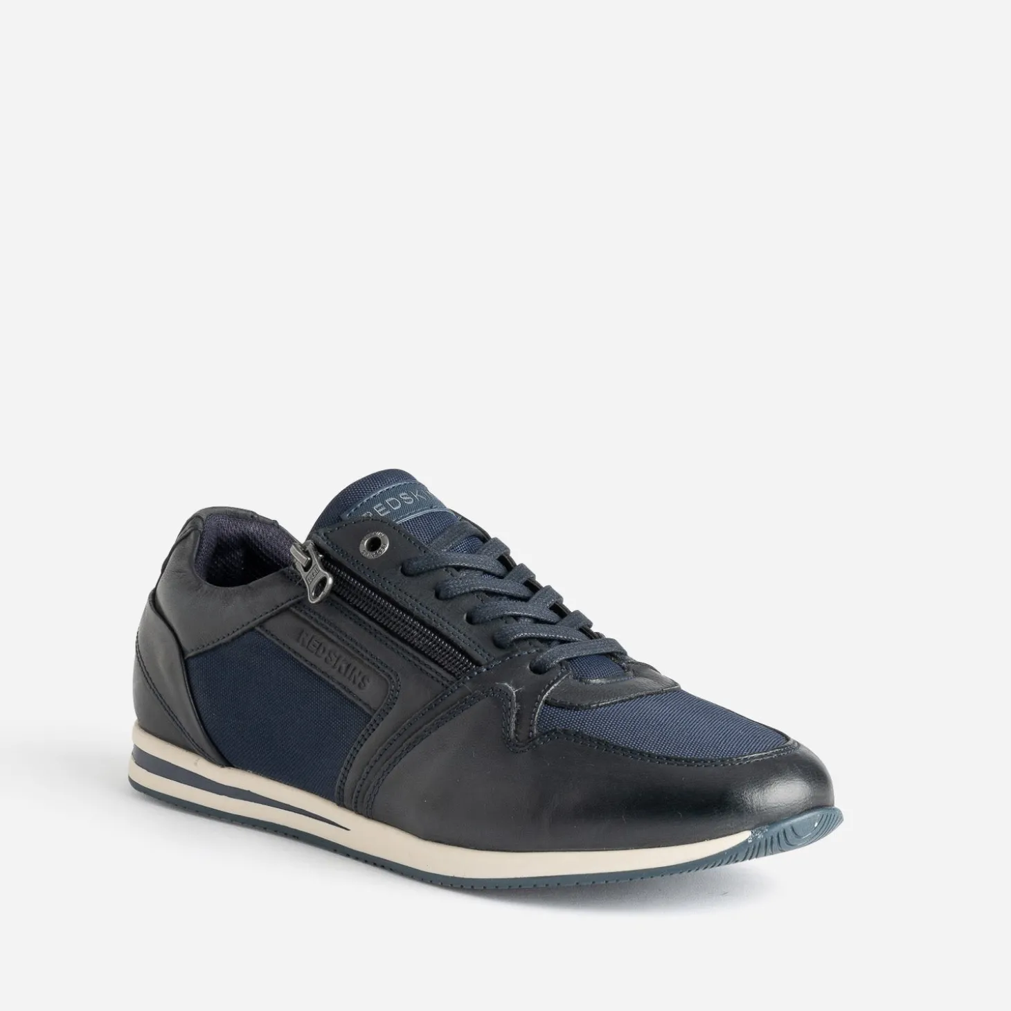 Cuir bleu marine, mesh bleu marine, lacet bleu marine, c’est le combo gagnant de cette tennis pour homme. Le zip extérieur facilite l’entrée et la sortie du pied. Prenez exemple pour y associer votre look du jour.