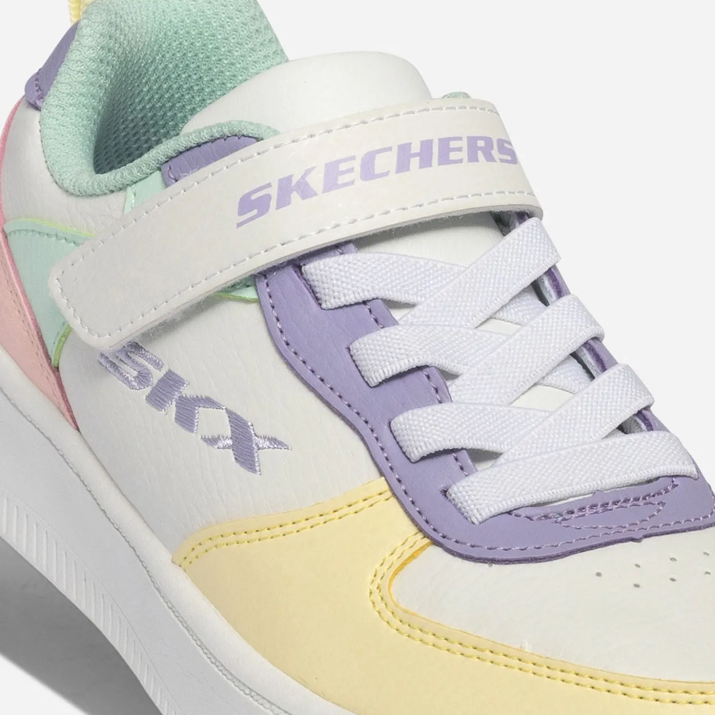 Tennis SKECHERS blanche, jaune, parme, vert, rose