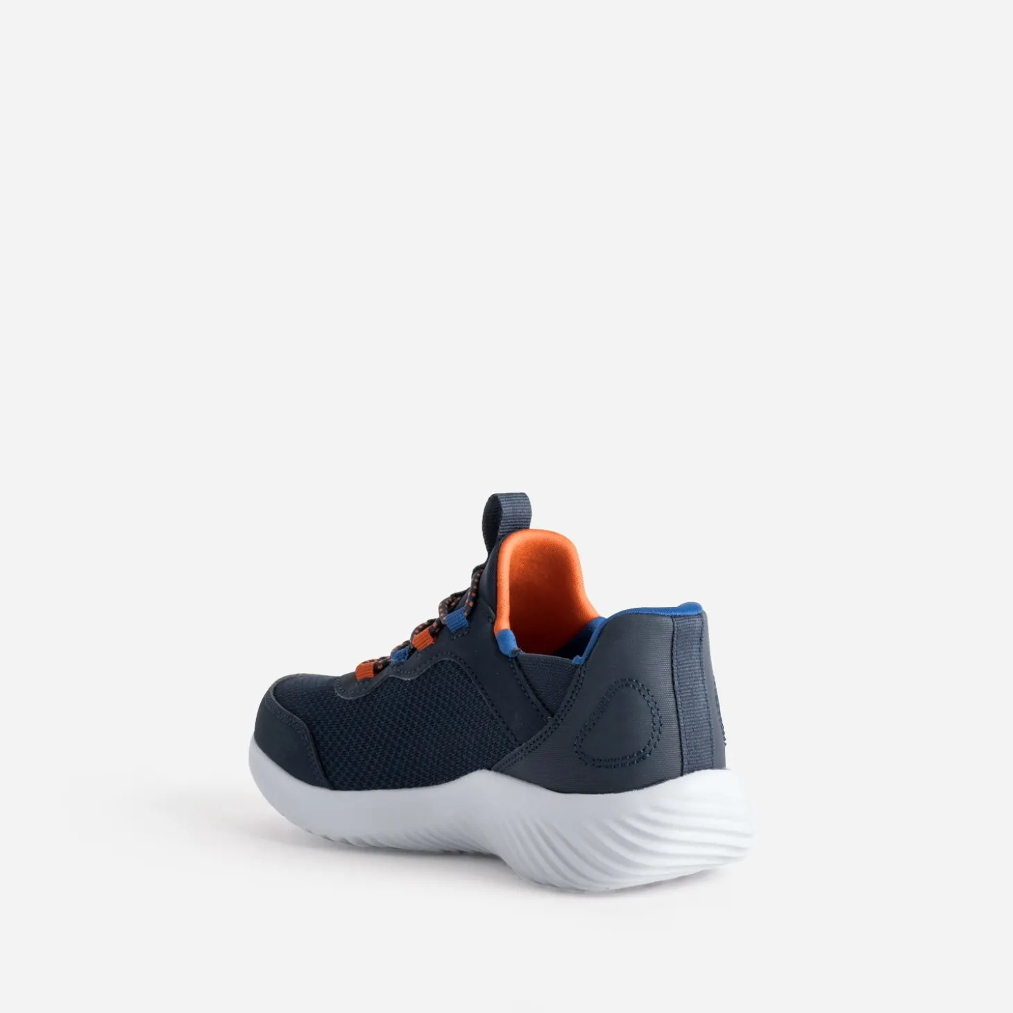 Du confort, du confort, du confort. C’est la promesse engagée de cette tennis pour enfant. En mesh bleu marine, elle est rehaussée de touches orange et bleu électrique, dans une belle harmonie. Conçue avec le Heel Pillow™ exclusif, elle s’enfile sans les mains, grâce aux lacets extensibles. La semelle intérieure en mousse à mémoire de forme Skechers Air-Cooled Memory Foam® est aérée et coussinée pour accueillir le pied. Un modèle qu’il va adorer porter au cours de sport jusque dans la cour de récré.