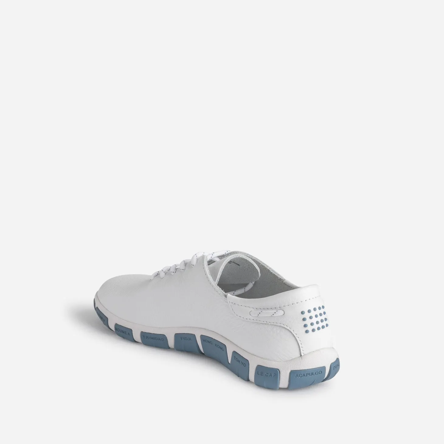 Adoptez, sans attendre, cette tennis pour femme en coloris blanc, avec lacet rond délicatement rayé et semelle bicolore. Signé ‘Les Marinières’, cet iconique de la marque conçu entièrement en cuir et non doublé, est reconnu pour sa légèreté, sa souplesse et sa résistance. New York, Hawaï, Saint Malo ou Hong Kong, voyagez le pied léger !