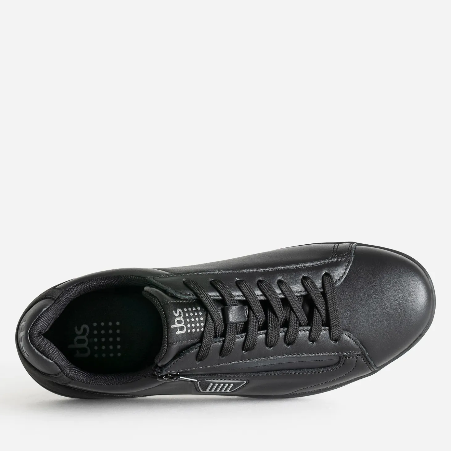 La tennis s’inscrit dans le shoesing quotidien des hommes depuis plusieurs saisons. En cuir noir, elle opte pour une ligne minimaliste, avec fermeture par lacet et zip côté. Elle est soulignée d’un empiècement suédé sur le contrefort, et rythmée de perforations identitaires à 20 points sur le côté. Un modèle à associer avec un total look noir.
