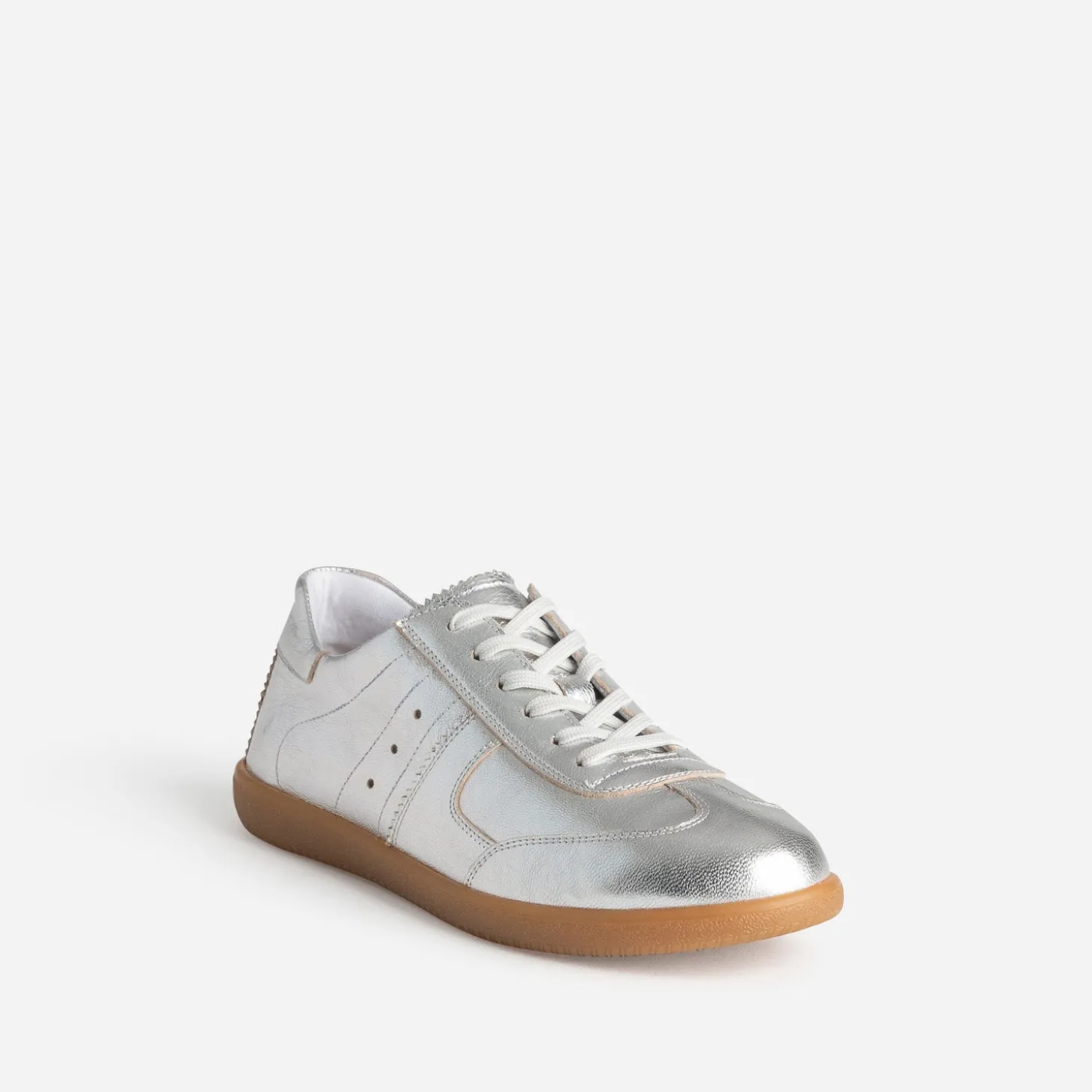 Impossible de ne pas se laisser tenter par cette tennis pour femme. En cuir souple, rythmée de découpes placées, elle propose une variation gris métallisé, sur une semelle extérieure camel, tandis que la semelle intérieure est amovible. Un modèle très actuel, à privilégier avec des nuances de gris et de blanc.