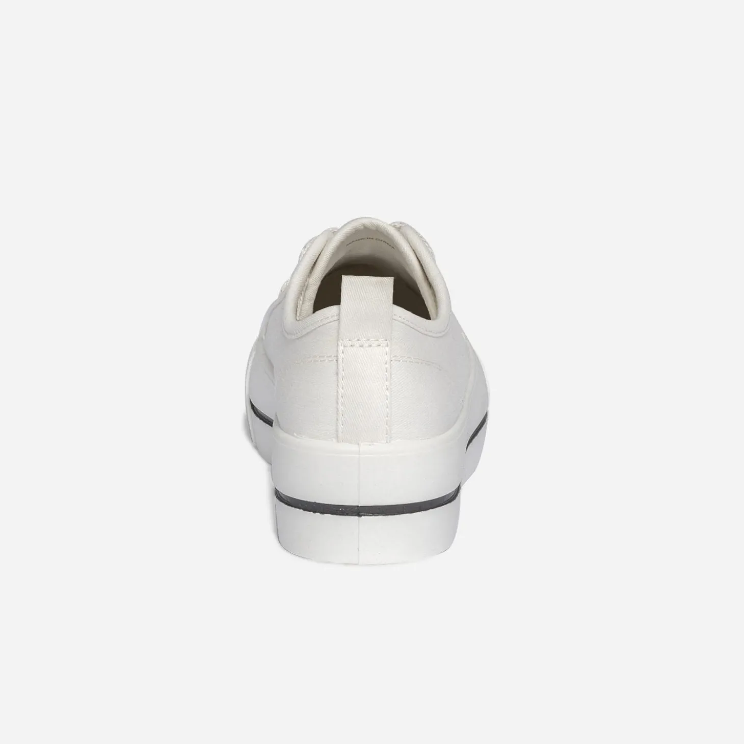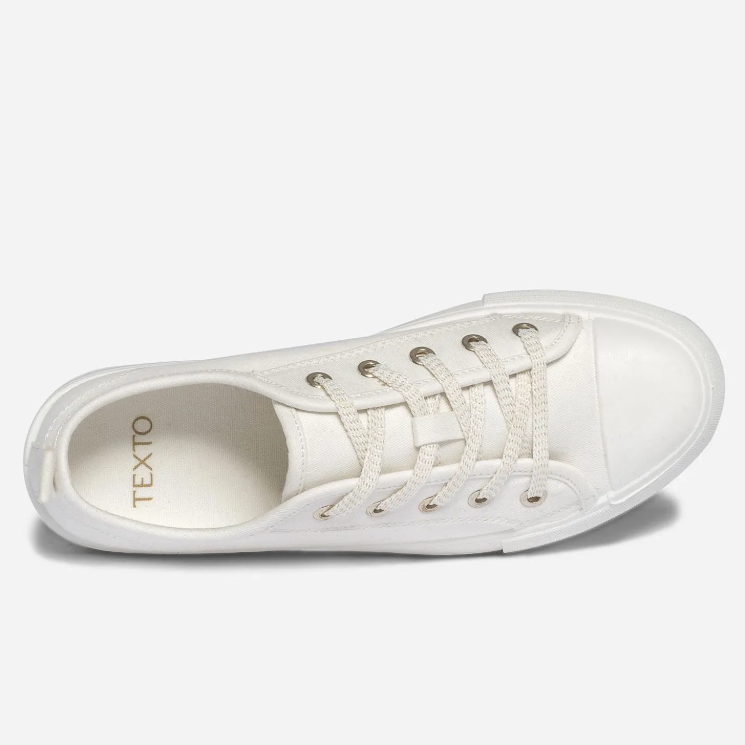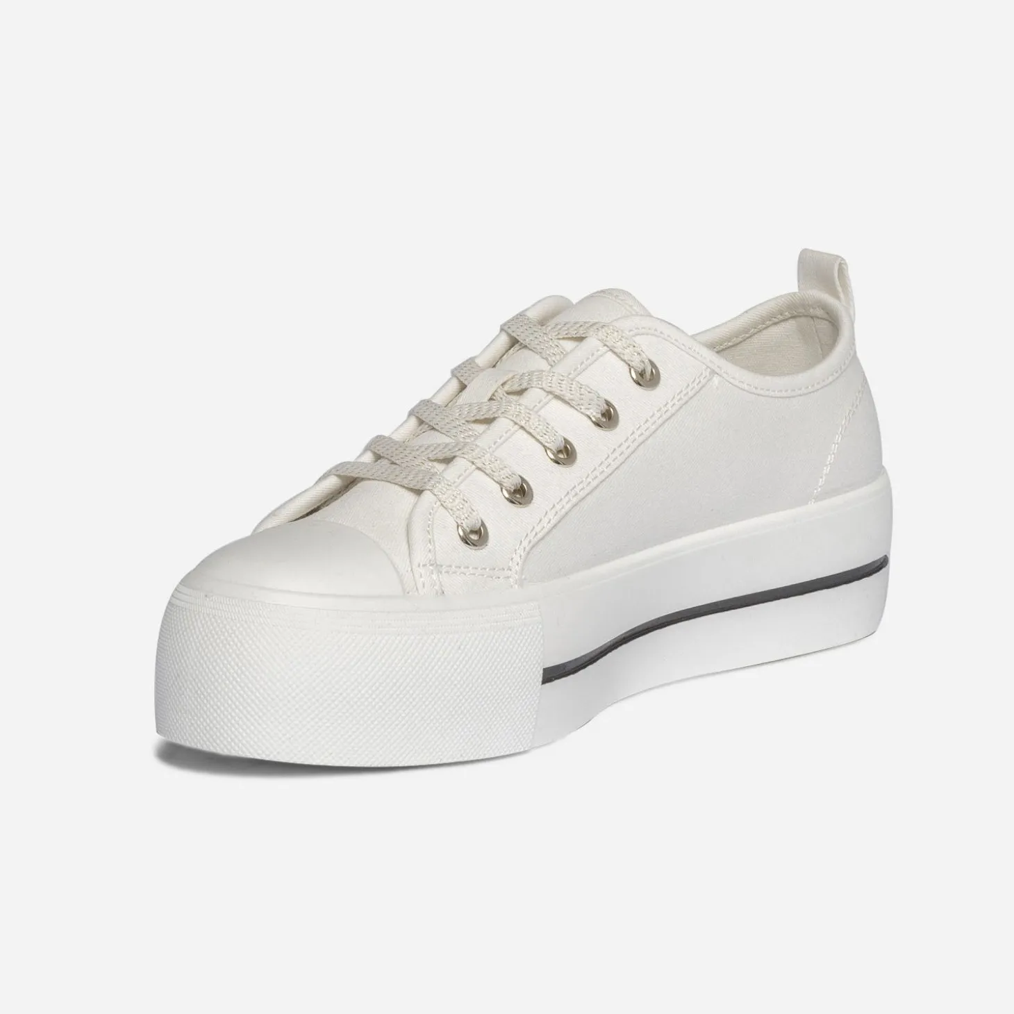 Craquage en vue ! Cette tennis pour femme sort ses plus beaux atouts ! Confectionnée en toile, elle se décline en coloris écru et se ferme par un lacet pailleté. Elle est aussi montée sur une semelle à plateforme de 4 cm, animée d’une fine rayure noire. Un modèle pensé pour la mi-saison, avec des pièces en denim, pour une touche de chic assurée.