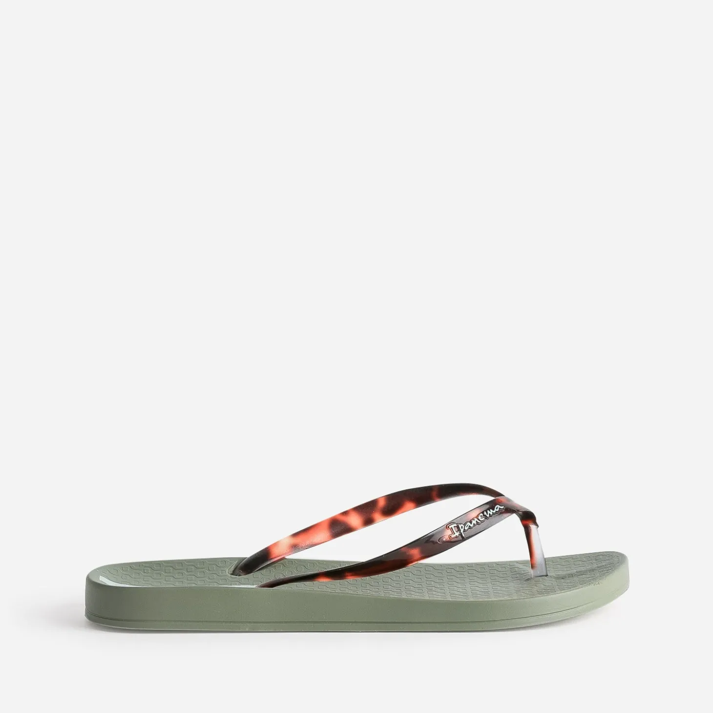 En attendant de vous échapper le temps d’un week-end ou pour des vacances, faites venir à vous l’été, avec des pièces colorées ! Cette tong pour femme s’autorise un sublime coloris kaki, réhaussé par des brides façon écailles. La semelle se démarque par un motif graphique, qui fait écho à celui du remblai de la plage d’Ipanema. Un modèle toujours à la pointe de la mode, à décaler avec une robe longue dans les tons beige, camel ou motif léopard.