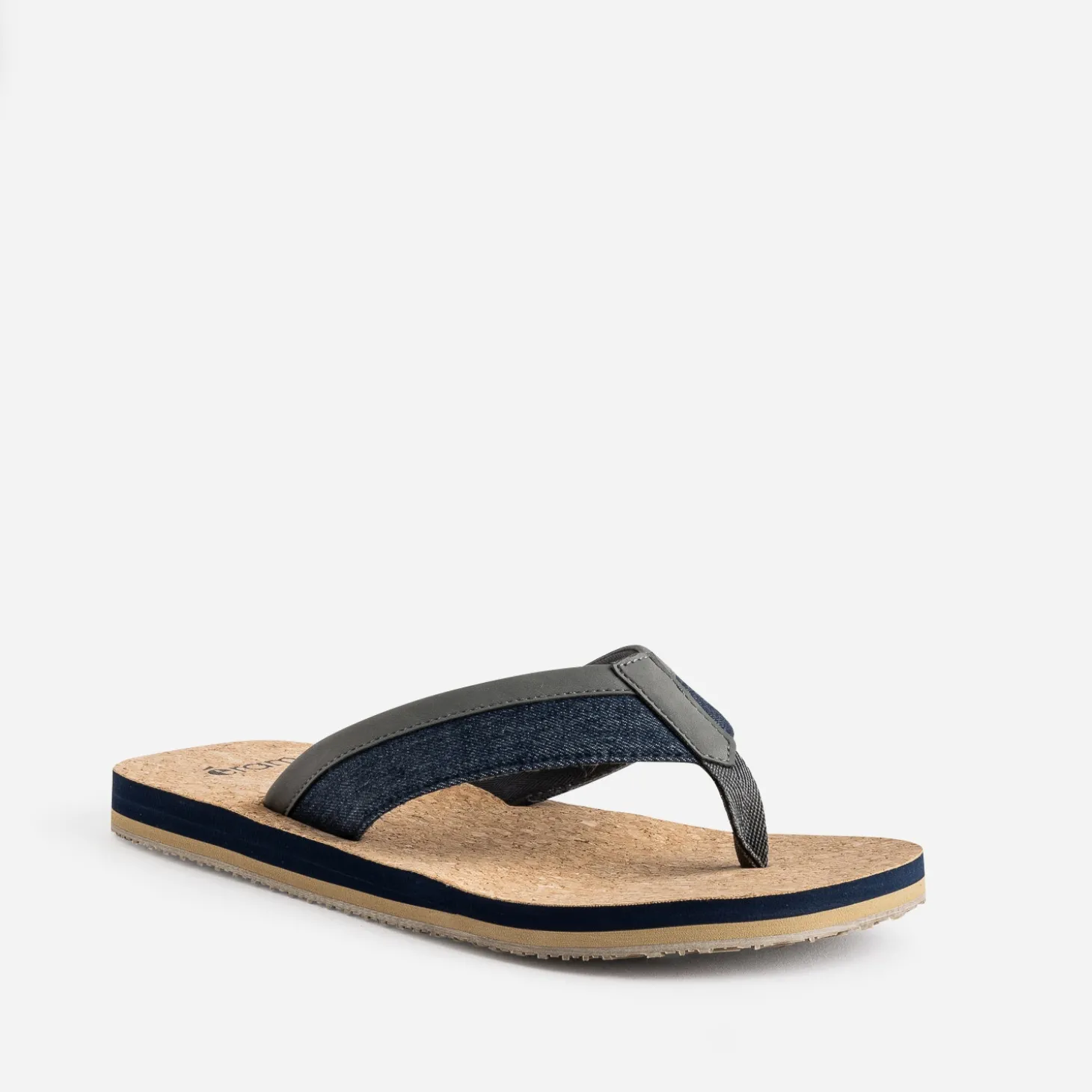 Mix matière denim brut et matière synthétique grise pour les larges brides de cette tong homme. Elle capte l’attention par une semelle imitation liège, très confortable au porté. C’est l’allié de vos sorties en bord de mer, week-ends prolongés, vacances.