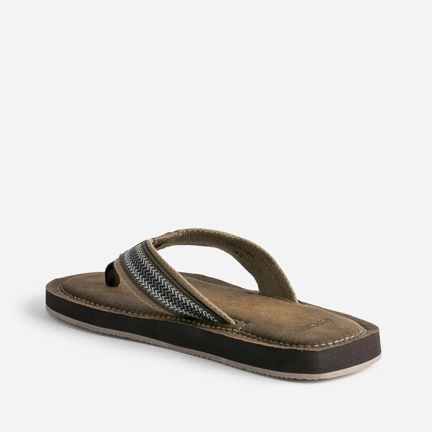 Une dominante de marron pour cette tong homme. Les larges brides sont conçues en textile tressé, recouvertes d’un galon brodé, et montées sur une semelle en matière synthétique. Un modèle à privilégier pour le plein été, avec des teintes claires et naturelles, du blanc, du beige, du kaki.